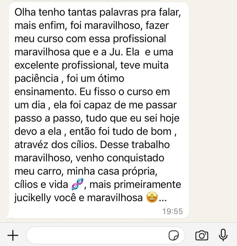 Jucikelly não ensina apenas uma aplicação de cílios — ela guia profissionais a desenvolverem um olhar refinado, uma identidade própria e um atendimento de alto padrão que fideliza clientes premium.